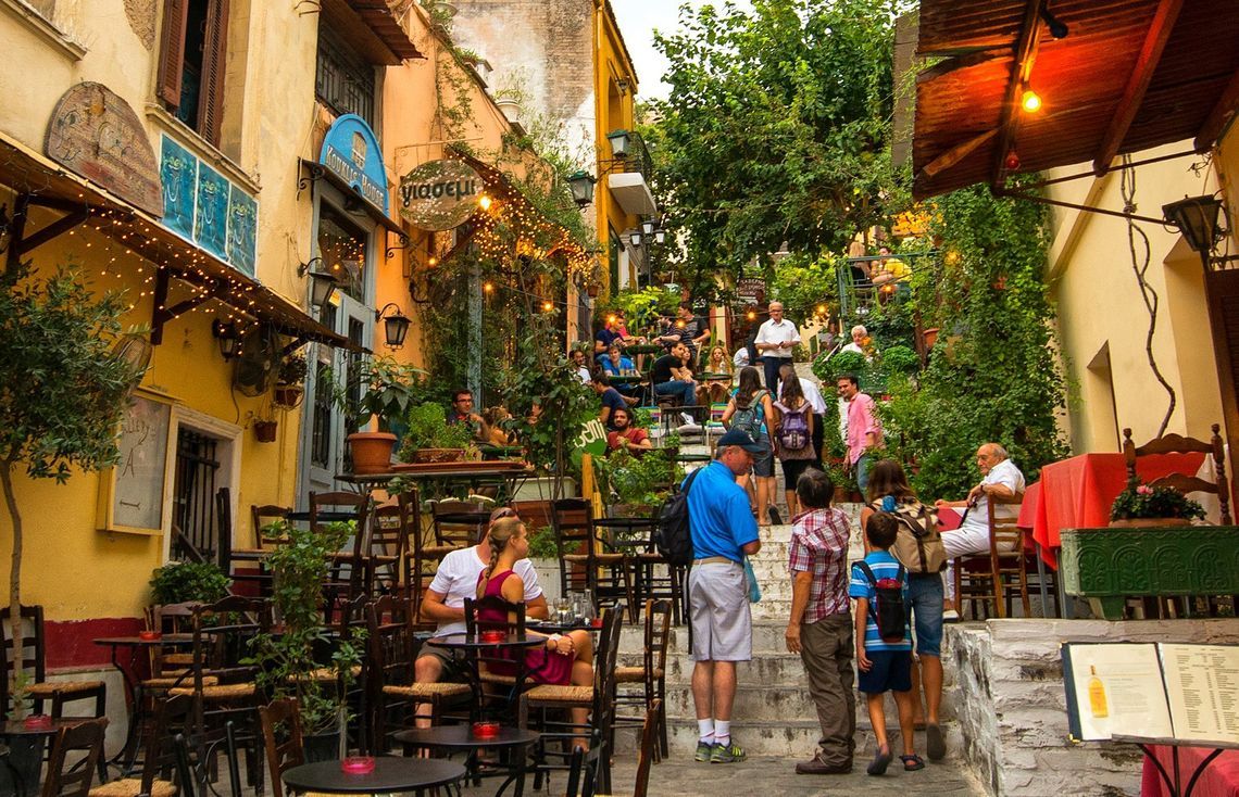 Национальная кухня Греции традиционно ассоциируется с большим количеством овощей и морепродуктов, оливками, мягким сыром фета и разнообразными травами и пряностями. В любом заведении Афин можно найти такие блюда, как «тиропета» (сырный пирог), «мусаку» (слоеное блюдо из баклажанов, картофеля и мясного фарша), «долматесдолма» (голубцы в виноградных листьях), «дзадзики» (густой соус из свежего огурца, йогурта и чеснока) и, конечно же, жареные на углях кальмары, рыбу, креветки и осьминогов.