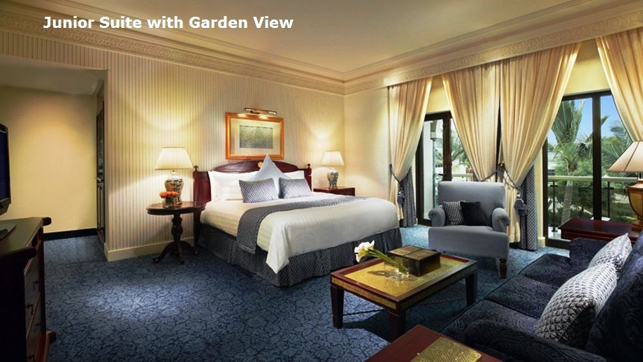 Номера: 79 номеров категории Deluxe garden view or mountain view room, 47 – Deluxe partial sea view room, 36 – Deluxe sea view room, 36 – Al Bustan Lagoon room, 12 – Junior suite, 19 – Executive suite mountain view, 13 – Executive view suite sea, 4 – Presidential suite mountain view, 4 – Presidential suite sea view.
