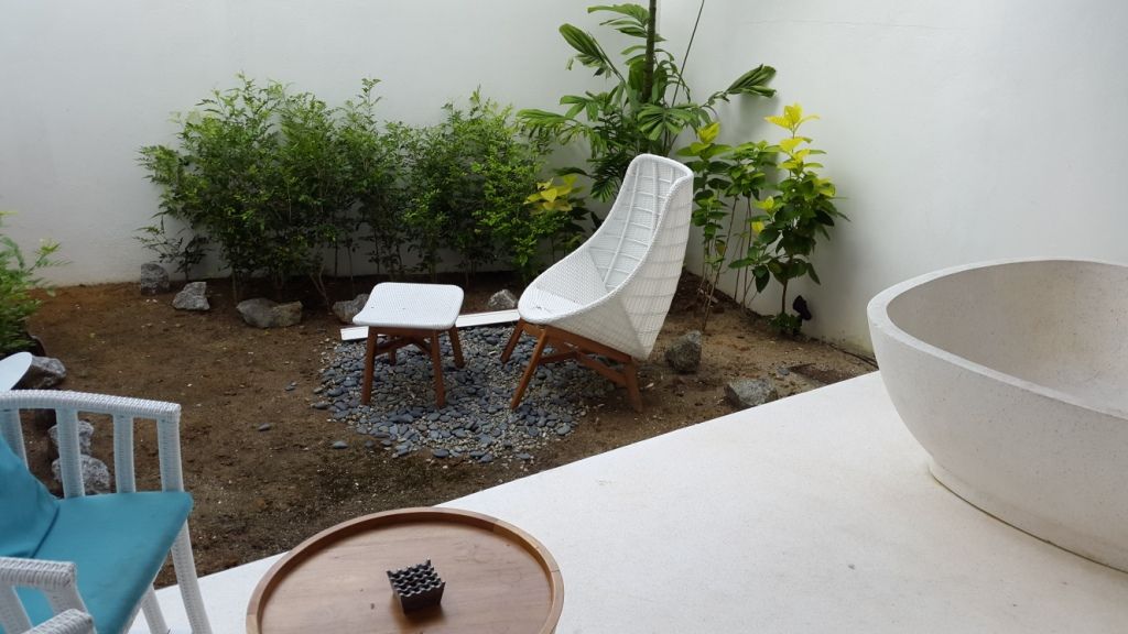 - DASH DELUXE (41 кв. м) – вид на сад или бассейн, спальня, ванная комната, балкон.