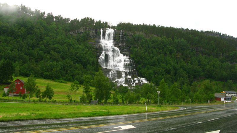 Южным участком «Дороги водопадов» называют отрезок шоссе Rv13, идущий от Восса (Voss) на юг через Хардаргенфьорд (Hardangerfjorden), вдоль берега Сёрфьорда (Sørfjorden) и далее. Во время путешествия по этой дороге есть возможность увидеть множество интересных водопадов, начиная от двухсекционного водопада Шервсфоссен (Skjervsfossen) и долины водопадов Хюседален (Husedalen), и заканччивая прекрасным водопадом Лотефоссен (Låtefossen). Также неподалеку от дороги находится скала "Язык тролля" (Trolltunga).