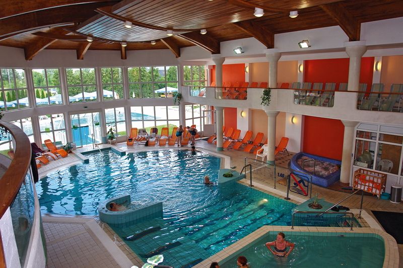 Полупансион (завтрак, ужин - обильный шведский стол), приветственный напиток, пользование термальным бассейном, крытым бассейном с подводными массажами, крытым и открытым плавательными бассейнами, джакузи, в летнее время открытым бассейном «Акапулько» (водной поверхностью 270 м2), финскими саунами, паровой баней, био-сауной, охлаждающей камерой, тренажерным залом, детской комнатой, детской площадкой, пользование купальным халатом, косметический набор в ванной комнате + в день заезда предоставляются одноразовые махровые тапочки + 1 бутылка (0,25 мл) минеральной воды в день / взрослого.