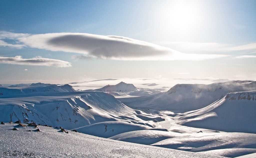 Площадь ледника Мирдалсйокудль (Myrdalsjokull) составляет 701 кв. км льда. Это четвертый по величине ледник в Исландии с максимальной высотой 1480 м. Ледник находится на вершине Катлы (Katla), возможно, самого ужасного вулкана страны, принесшего за всю историю Исландии больше страданий местным жителям, чем какой-либо другой вулкан.