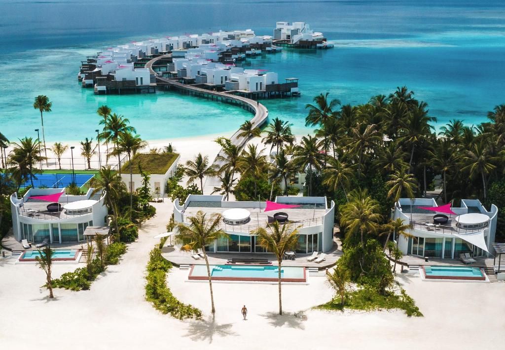- 4 Overwater Residence (680 м2/ внутренние помещения - 205 м², макс. 4 или 2+2 реб. (6-17 лет) или 2+3 реб. (0-12 лет) или 2 + 2 infant). Надводные виллы с двумя спальнями, ванными комнатами, террасой на крыше и частным бассейном.
