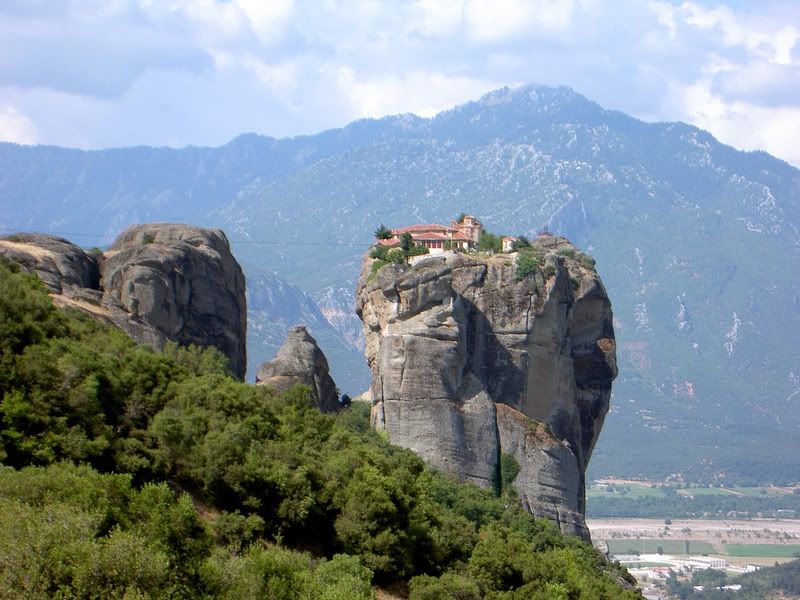 Первый день - знаменитые монастыри Метеоры (, включенные в список всемирного наследия ЮНЕСКО. Они относятся к числу наиболее почитаемых центров паломничества для всех православных христиан. В то же время Метеоры – одна из самых известных и популярных достопримечательностей Греции. Грандиозные скалы, устремляющиеся ввысь с ровной поверхности Фессалийской равнины и достигающие высоты 600 метров, представляют редкое геологическое явление. Несколько сотен лет назад на вершинах метеорских скал непостижимым образом были возведены православные монастыри, которые по сей день вселяют в души посетителей восторг и трепет перед силами природы и возможностями человеческого духа.