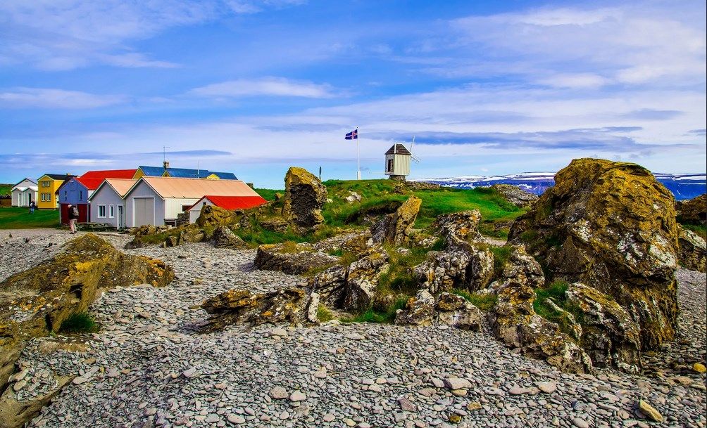 Но не только естественная природная красота делает остров таким уникальным и примечательным. На нем сохранились и до сих пор строго соблюдаются традиции, от которых в других регионах Исландии давно отказались. Тут находится старинная ветряная мельница с каменными жерновами, датируемая 1830 годом.