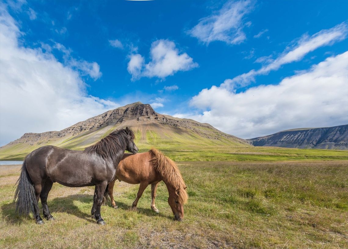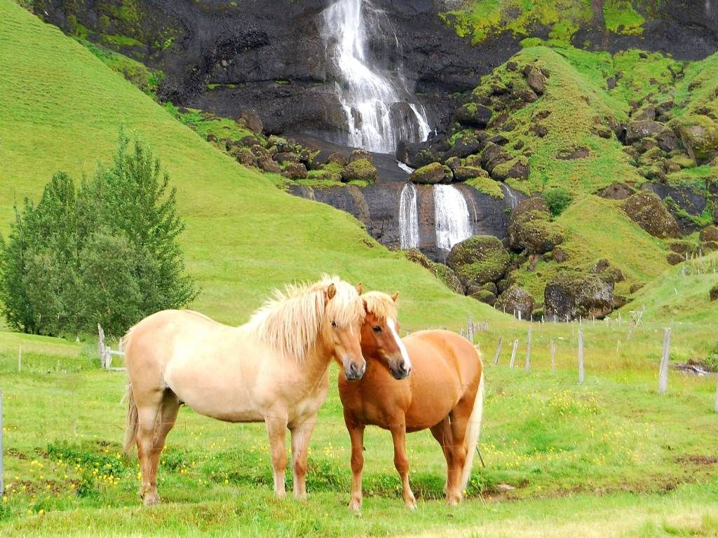 Около тысячи лет назад в Исландию приплыли викинги и привезли с собой лошадей. Поскольку остров удален и отрезан от внешнего мира, порода исландских лошадок осталась чистой, без примесей других кровей, и получила официальное название "лошади викингов". Это невысокие, но в то же время крепкие и мускулистые животные, которые дружелюбны, послушны и редко доставляют своим наездникам неприятности. Исландские лошади – любимцы не только местных жителей, но и туристов, посещающих Исландию. Животные пронесут всадника по зеленым равнинам, неровным скалистым склонам, вдоль берегов бурлящих рек и полей застывшей лавы. Даже если вы никогда не сидели в седле – не стоит бояться! Попробуйте прокатиться на этих лошадках – в компании таких дружелюбных и понятливых животных прогулка по живописным исландским просторам – настоящее удовольствие!