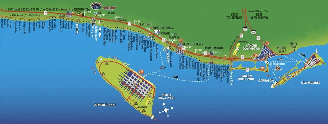Основные курорты здесь — Плайя-дель-Кармен и остров Косумель.