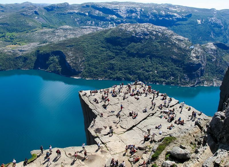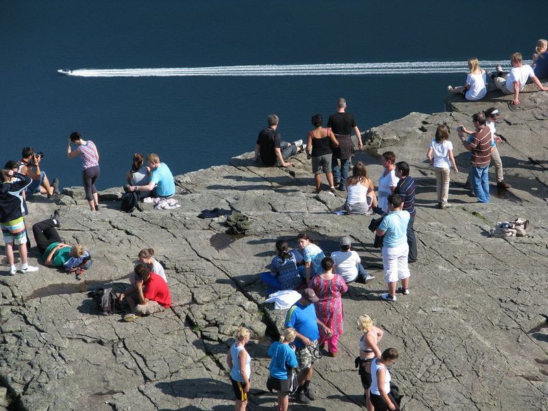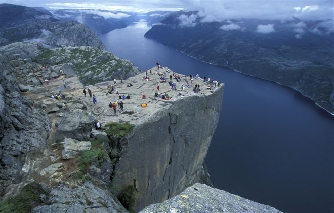 Прекестулен не только природная достопримечательность и живописное место, но и экстремальный аттракцион для туристов. Побывав здесь можно с полной уверенностью говорить, что "стоял на краю”. Ежегодно Прекестулен, являющийся одним из главных природных достопримечательностей Норвегии, посещают более 100 тыс. туристов, при этом каждый преследует свои цели. Одни хотят отдохнуть от повседневных забот, наслаждаясь живописными видами, другие жаждут новых впечатлений, третьи хотят избавиться от своих страхов. Но есть и те, кто приходит сюда для того, чтобы покончить жизнь самоубийством… Несмотря ни на что на вершине Прекестулена нет абсолютно никаких ограждений. Поэтому самые смелые могут даже поболтать ногами над пропастью. Но подойти к краю решаются далеко не все гости Прекестулена. Да оно и неудивительно. Когда стоишь на вершине, возникает ощущение, что утес вот-вот рухнет. А трещина посредине плато (шириной около 25 см) словно подтверждает страшное подозрение. Однако если верить легенде – боятся нечего. Согласно ей Прекестулен рухнет лишь тогда, когда 7 сестер станут женами 7 братьев из одного региона Норвегии. Другая легенда гласит, что в древности Прекестулен использовался для казней и жертвоприношений.