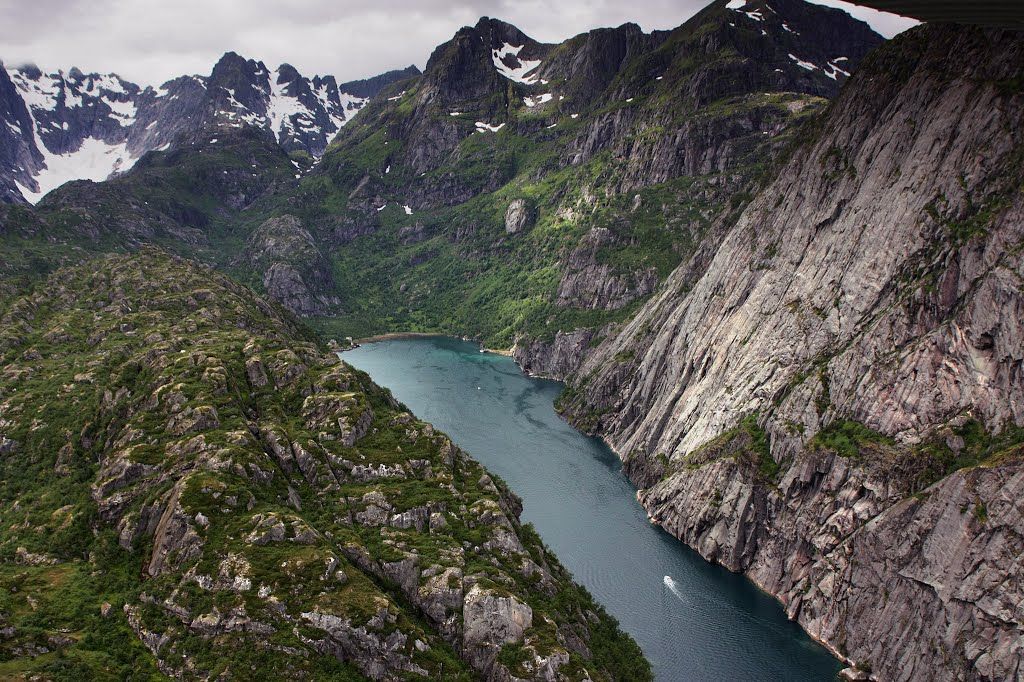 Тролльфьорд (Trollfjorden) – один из самых живописных норвежских фьордов. Он расположен к северо-востоку от Свульвэра (Svolvær). Длина фьорда около 2,5 км, ширина у входа – около 100 метров. Свое название Тролльфьорд получил благодаря примечательной вершине, которая мрачно и таинственно нависает над спокойными водами. Согласно легенде, тролль Хинной рассердился на людей из-за того, что их коровы повадились пастись на местных пастбищах. Схватив две гигантские каменные глыбы, он со всего размаху стукнул ими друг о друга. Раздался ужасающий звук, и люди вместе с коровами, испугавшись, покинули эти места. С того времени Хинной стоит и смотрит, чтобы никто больше не посягнул на его земли. А для того, чтобы ни у кого не возникло сомнений относительно серьёзности его намерений, он воткнул свой огромный топор прямо между горами.