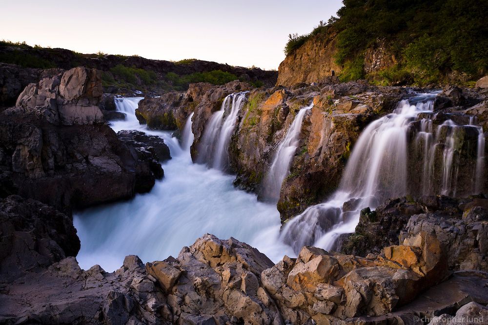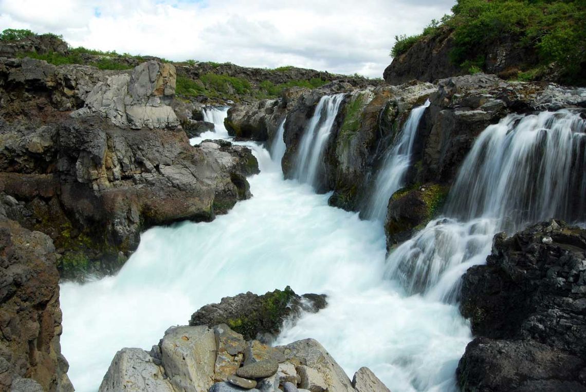 Рядом располагается водопад Хрейнфоссар (Hraunfossar).
