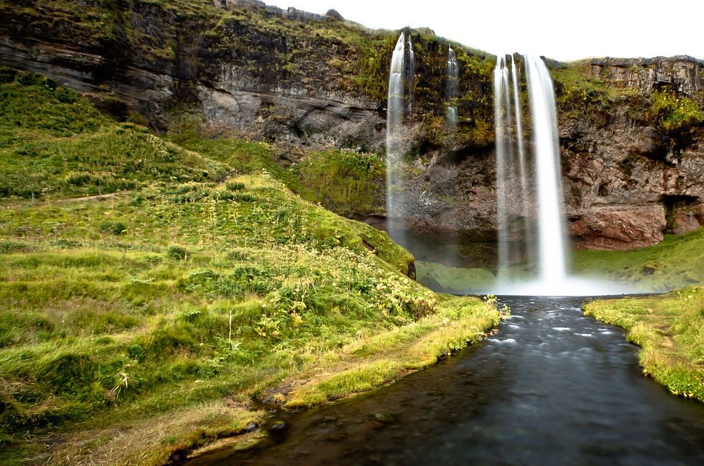 Путешествуя по южному берегу Исландии (Sudurland), невозможно пропустить водопад Сельяландфосс (Seljalandsfoss), который видно с трассы №1. Этот высокий водопад, не особенно многоводный, вниз стекает одной струей.