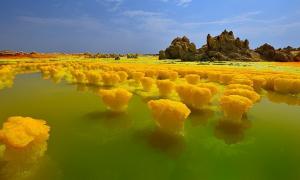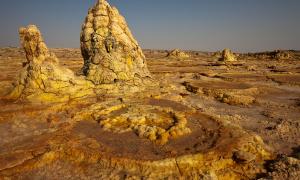 Данакиль, пожалуй, самая необычная пустыня в мире. Данакиль — гремучая смесь, состоящая из серных газов, безжалостного зноя и действующих вулканов. И всё это обильно полито ядом лимонно-красного цвета.