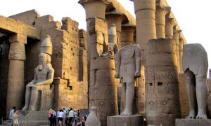 Луксорский Храм: был возведён фараоном Аменхотепом III в 15 веке до н. э. Луксорский храм расположен всего в 2 километрах от Карнакского. Оба храма играли ключевую роль во время древнеегипетского праздника – фестиваля Олет. Фестиваль Олет был праздником бракосочетания бога Амона и его жены Мут. Во время торжеств изображения верховных богов и их сына Хонсу перевозили из Карнакского храма в Луксорский. Во время этого праздникам проводилась повторная коронация фараона. Между Луксорским и Карнакским Храмом проходит Аллея Сфинксов. В древности там стояло 1350 статуй сфинксов, большинство из которых сохранилось до наших дней.