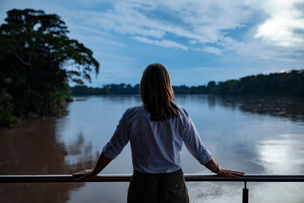 На судне к нам присоединятся опытные местные гиды-натуралисты, которые кратко и информативно расскажут об эквадорской Амазонии. После этого у гостей будет возможность исследовать наш круизный лайнер и полюбоваться с солнечной палубы пейзажами тропических лесов, удивительной флорой и фауной региона пока мы скользим вниз по реке Напо.