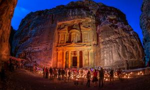 Петра – царство древних набатеев, одного из наиболее сильных племен древнего мира. Древний город Петра – это национальное достояние Иордании, волшебный город, как бы на глазах появляющийся из огромной скалы, внесен Международной организацией ЮНЕСКО в список шедевров мирового культурного наследия. Вот уже несколько веков Петра до глубины души поражает путешественников и своим видом, и редкостным розово-красным цветом под цвет материнской горы, из каменной плоти которой и высечены все городские здания. По праву, Петра считается одним из новым 7 Чудес Света. Неизгладимое впечатление, которое Петра производит на всех приближающихся к ней путешественников, оказывает неожиданное и вместе с тем удивительно выгодное, эффектное расположение города, спрятанного в самом центре скалы, так что дорога к нему проходит по глубокому и узкому ущелью (местное название: сик), почти трещине в горе, возникшей здесь в результате доисторического землетрясения. На выходе из ущелья неожиданно распахивается величественная перспектива Петры, с ее главным памятником – Сокровищницей. Монумент Сокровищница известна во всем мире благодаря финальным кадрам фильмов «Индиана Джонс» и "Последний поход крестоносцев".
