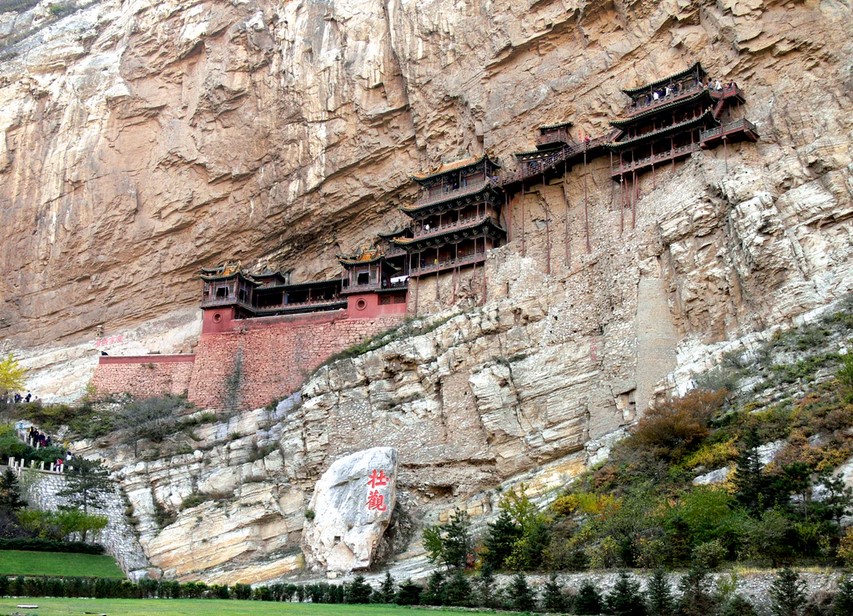 Висячий Монастырь (ЮНЕСКО): висячий храм Сюанькунсы интересен не масштабными размерами, а уникальной конструкцией и невероятным расположением. В переводе с китайского название монастыря Сюанькунсы переводится как "храм, который висит в воздухе". Он действительно построен на небольшом уступе в горном ущелье, на высоте 50 метров от земли.
