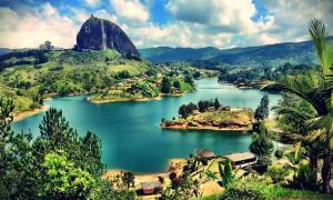 В назначенное время трансфер в Гуатапе. Скала Эль-Пеньон-де-Гуатапе находится между городками Эль-Пеньол и Гуатапе, и каждый из них считает ее своей достопримечательностью, зазывая туристов к себе. Поэтому монолит так и назвали, объединив имена городов, чтобы никому не было обидно. В этих местах жили индейцы племени тахамис, они считали скалу священной и называли ее «мухарра», то есть «камень». Тахамис поклонялись рыбе Батолито, которая, согласно поверью, выпрыгнула из моря, чтобы защитить их от гнева небесных богов. В бою она окаменела и превратилась в Эль-Пеньон-де-Гуатапе.