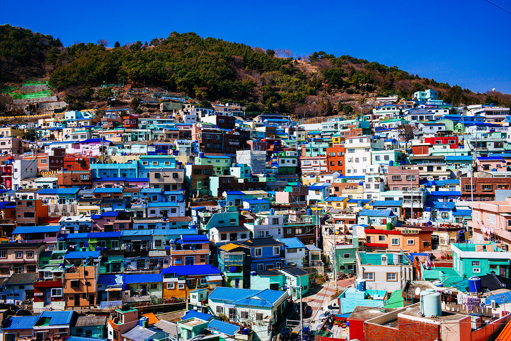 Живописный район недалеко от центра Пусана. Основана беженцами во времена Корейской войны. В настоящее время, благодаря усилиям местных жителей, деятелей искусства и администрации города Пусана, деревня стала настоящей достопримечательностью, с великолепной граффити, камерными скульптурами, причудливой малоэтажной архитектурой и ласковыми котиками.