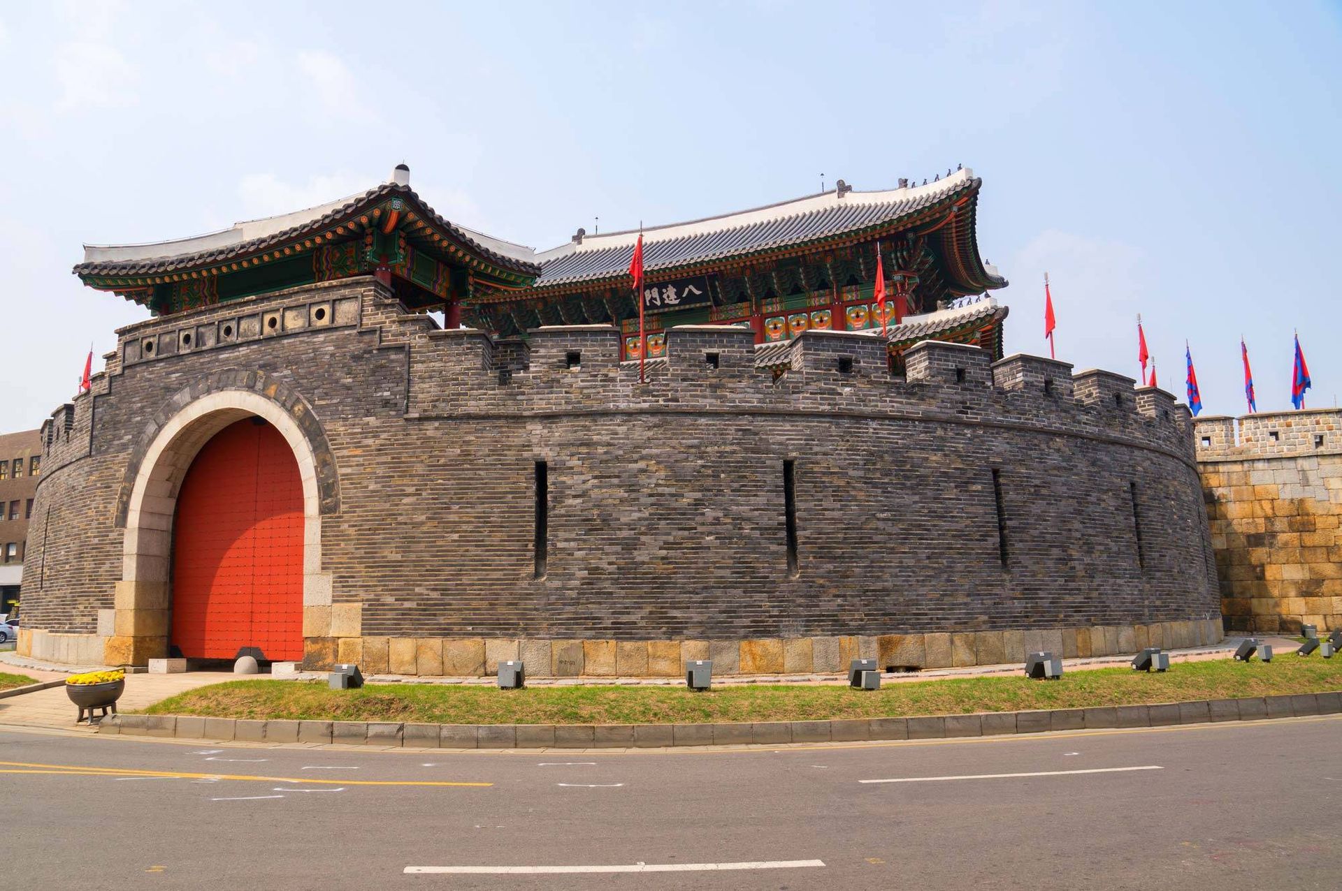 Крепость Хвасон в Сувоне (объект Всемирного культурного наследия ЮНЕСКО) является официальной крепостью города Сувон, провинции Кёнги-до, начиная с позднего периода династии Чосон (1392-1910 гг.). Строительство крепости было начато в 1794 году и закончено в 1796 году. Она была построена с целью выражения правителем сыновнего почтения своему отцу Чанхёнсечжа, а также для положения начала новому городу с собственной экономической силой. Стена крепости достигает 5,52 км длины, здесь имеется великое множество военного оборудования, которое не найти в других крепостях. На вершине крепостной стены был установлен Ёчжан для наблюдения за врагом. Сувон Хвасон прошла через множество беспокойных периодов и разрушений, а во время Корейской войны многое из оборудования было настолько повреждено, что его не стали даже реставрировать. Полное восстановление крепости началось в 1975 году, и закончилось в 1979 г. Крепость в декабре 1997 г. была внесена в список Всемирного культурного наследия ЮНЕСКО.