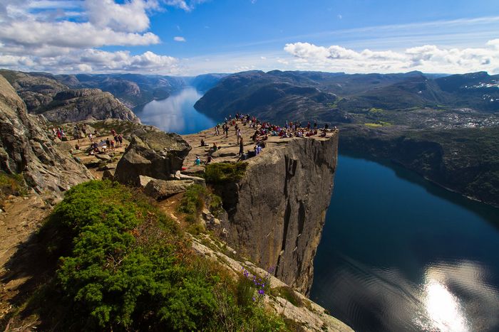 Завтрак “шведский стол”. Восхождение на отвесную скалу Прейкестолен ("Кафедра священника"), с которой открывается потрясающий вид на Люсефьорд и горные цепи.