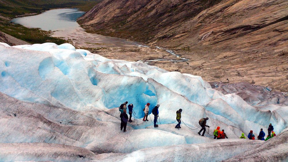 Поездка по панорамной дороге к языку Нигардсбреен вечного ледника Юстедальсбреен.