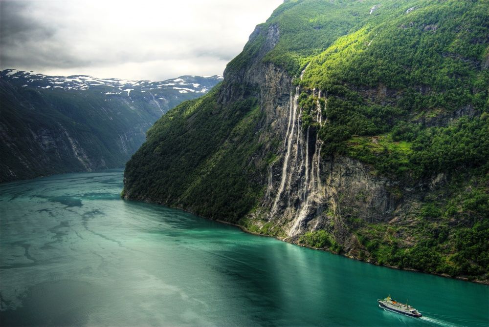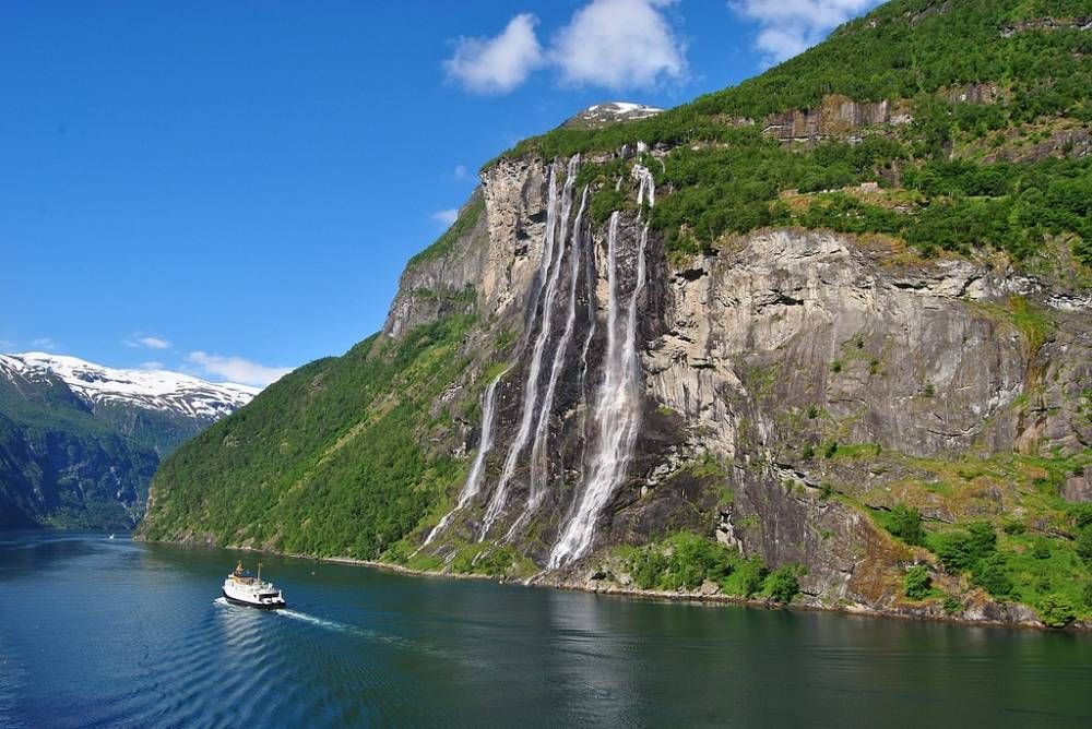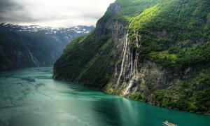 Завтрак в отеле. Путешествие по национальной туристической дороге "Гамле Стрюнефьеллсвеген" ("Старая Стрюнская дорога"). Спуск к Гейрангерфьорду по национальной туристической дороге "Гейрангер-Тролльстиген". Круиз по величественному Гейрангерфьорду во время которого вашему взору откроются живописные высокогорные фермы, горные серпантины, и мощные водопады "Семь Сестер", "Жених" и "Фата Невесты" (1 час).