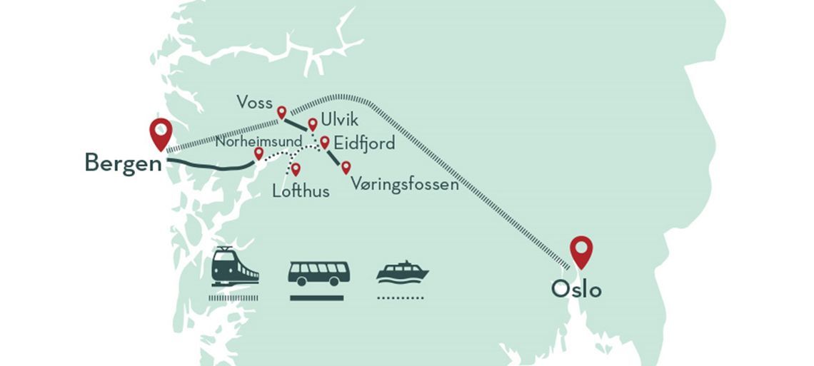 Это самостоятельная 1-но дневная поездка, без сопровождения. В зависимости от маршрута продолжительность путешествия может занимать от 7 до 24 часов и может выполняется в самых разных вариантах: Осло-Берген, Берген-Осло, Берген-Берген, Осло-Осло.