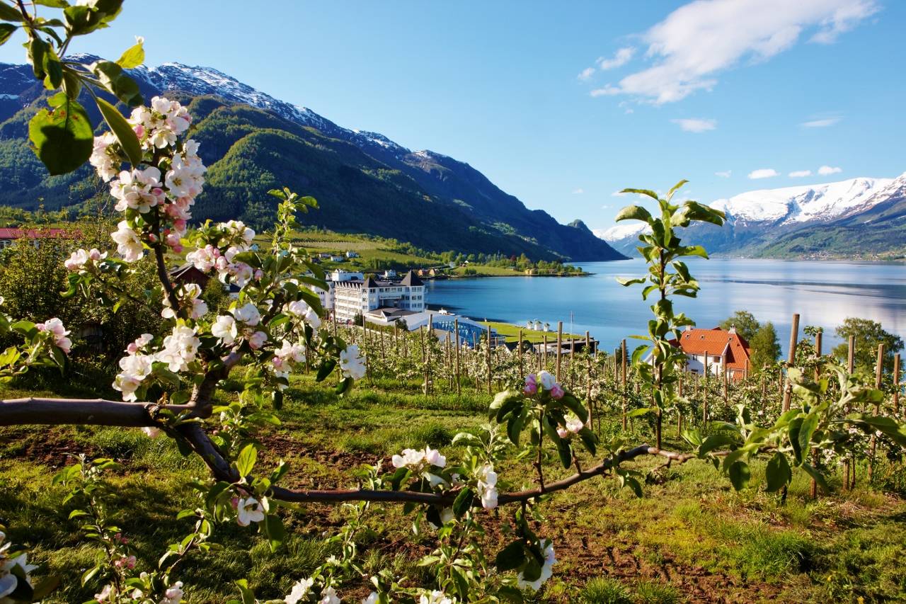 Хардангерфьорд (Hardangerfjord) известен багодаря яблоневым садам, цветущим на берегах фьорда, леднику Фолгефонна (Folgefonna) и водопаду Вёрингфоссен (Vøringfossen).