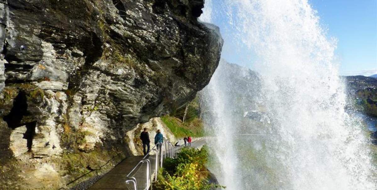 Путь из Хардангерфьорда в Берген на автобусе проходит через горное плато Квамскуген (Kvamskogen) и водопад Стендалсфоссен (Stendalsfossen).