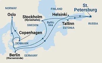 САНКТ-ПЕТЕРБУРГ, Россия → ТАЛЛИН, Эстония → СТОКГОЛЬМ, Швеция (п.Нюнесхамн) → КОПЕНГАГЕН, Дания → ОСЛО, Норвегия → СКАГЕН, Дания → СТОКГОЛЬМ, Швеция → САНКТ-ПЕТЕРБУРГ, Россия