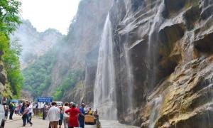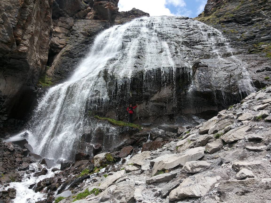 Водопад расположен на высоте 2800м, свое название он получил за необычную форму, падая с высоты 25 метров мощный поток воды рассыпается длинными струями, напоминая косы горянки.