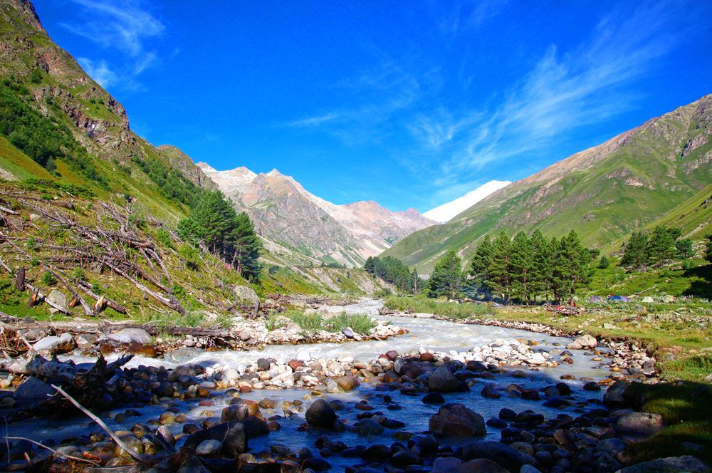 Ущелье реки Ирик считается одним из самых красивых в Приэльбрусье. Но, чтобы насладиться его красотами, придётся постараться – первые 2 км нашего маршрута нас ждёт набор высоты в почти 700 м от посёлка Эльбрус, мимо Песчаных замков. Зато остальные 5 км пути мы будем наслаждаться прекрасными видами: открывшейся во всей красе Восточной вершиной Эльбруса, рекой Ирик, плавно текущей внизу в ущелье, ароматным сосновым лесом, по которому так приятно пройти в летний зной.