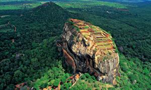 Сигирия. Резиденцию для царя Касапа возвели в V века н. э. Сигирия или Львиная Скала высотой 370 метров, была названа так из-за огромного каменного льва, когда-то стоящего у входа наверх. На вершине остались развалины Верхнего дворца, а у подножия находится Нижний дворец, окруженный стенами и рвом, заполненным водой. К Верхнему дворцу ведут ступени, вырубленные в камне. Во времена древних правителей поверхность стены 140 м. в длину и 40 м. в высоту полностью была покрыта фресками с фигурами апсар - небесных танцовщиц. Стойкие растительные краски позволили фрескам частично сохраниться, даже прошедшие полторы тысячи лет не смогли их полностью стереть. С 1982 года Сигирия находится под охраной ЮНЕСКО.