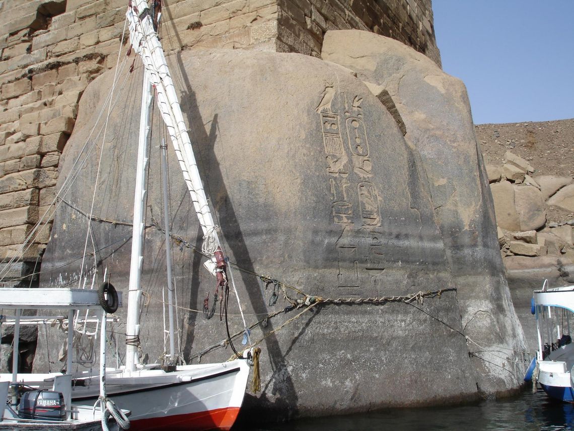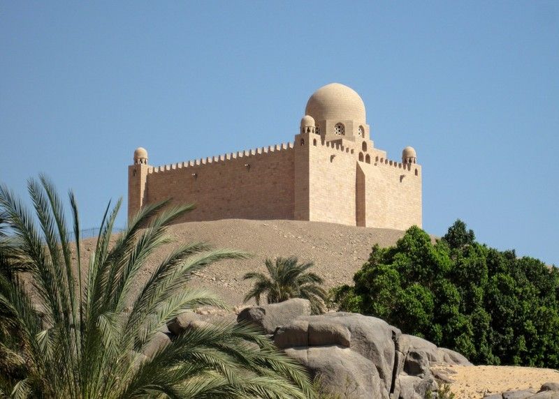 Недалеко от мавзолея лежат развалины старинного коптского монастыря Святого Симеона, основанного в VI веке. От мавзолея Ага-Хана фелюга пробирается между мелкими островками и вновь делает остановку - у южной оконечности острова Элефантин. Высокий берег облицован каменными плитами, на которых высечены иероглифические надписи. В этой части острова и начинался древний Асуан.