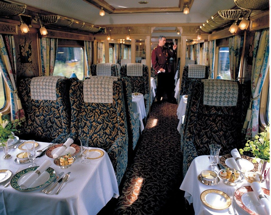 ПОЕЗД 11 прекрасно отреставрированных вагонов в стиле ар-деко, каждый с 20–26 столами, рассчитанными на два, три или четыре гостя