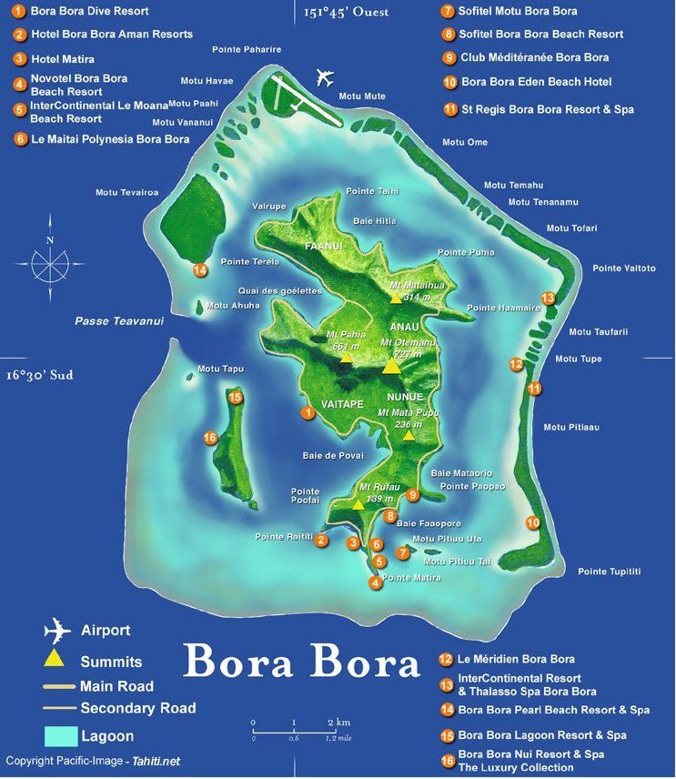Жемчужина Тихого океана, Бора Бора, названная так благодаря своей перламутровой лагуне представляет собой горный массив с тремя вершинами, высшая точка которой Отеману достигает 727 метров.