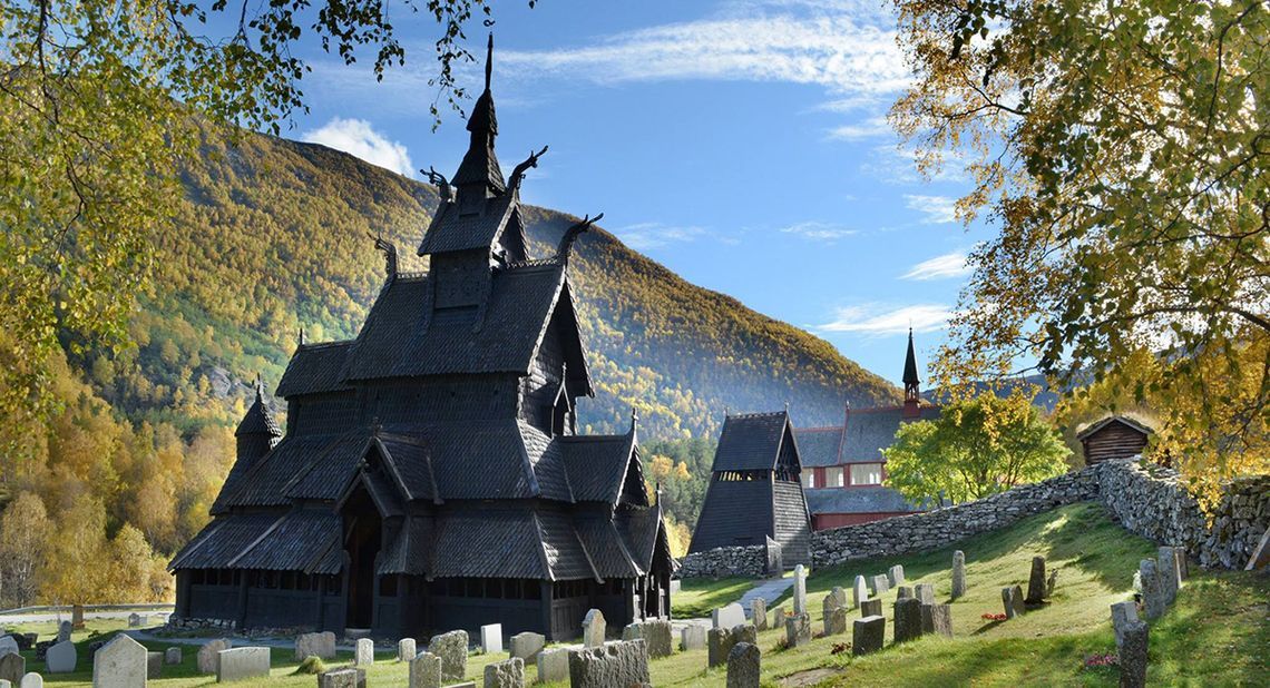 Боргундская церковь (Borgund Stavkyrkje) – единственная из деревянных церквей, сохранившаяся без изменений со времён Средневековья. Расположена к востоку от Согнефьорда (Sognefjorden), вблизи Лаэрдала (Laerdal). Церковь посвящена святому Андрею Первозванному и была полностью выстроена из дерева в 1150 году. Внутреннее убранство очень простое: никаких церковных скамей или украшений, а освещение ограничено тремя небольшими отверстиями высоко на стенах. Снаружи церковь богато украшена резьбой в виде зверей, драконьих голов и рунических надписей. Есть тут и отдельно стоящая колокольня со средневековым колоколом. Кафедра же была изготовлена в XVI веке.