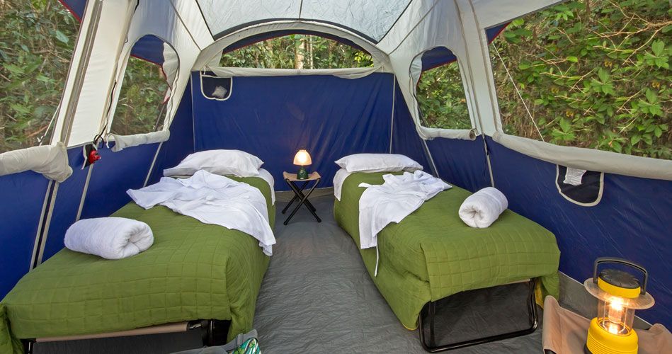 Каждый лагерь полностью герметичен и устроен над землей на деревянной платформе, оснащен удобными кроватями и очаровательной деревенской мебелью. Наши гости смогут насладиться изысканными блюдами, шампанским и горячим душем в нашем палаточном лагере после захватывающей прогулки в лесу.