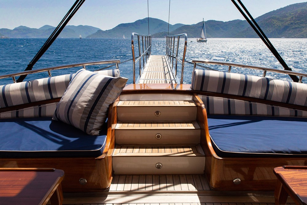 - 2 зоны отдыха на второй палубе – зона отдыха с удобными обеденными столами в носовой части яхты –идеальное место, чтобы позавтракать или поужинать с видом на море. На удобных диванах в кормовой части можно расслабиться, слушая плеск морских волн;