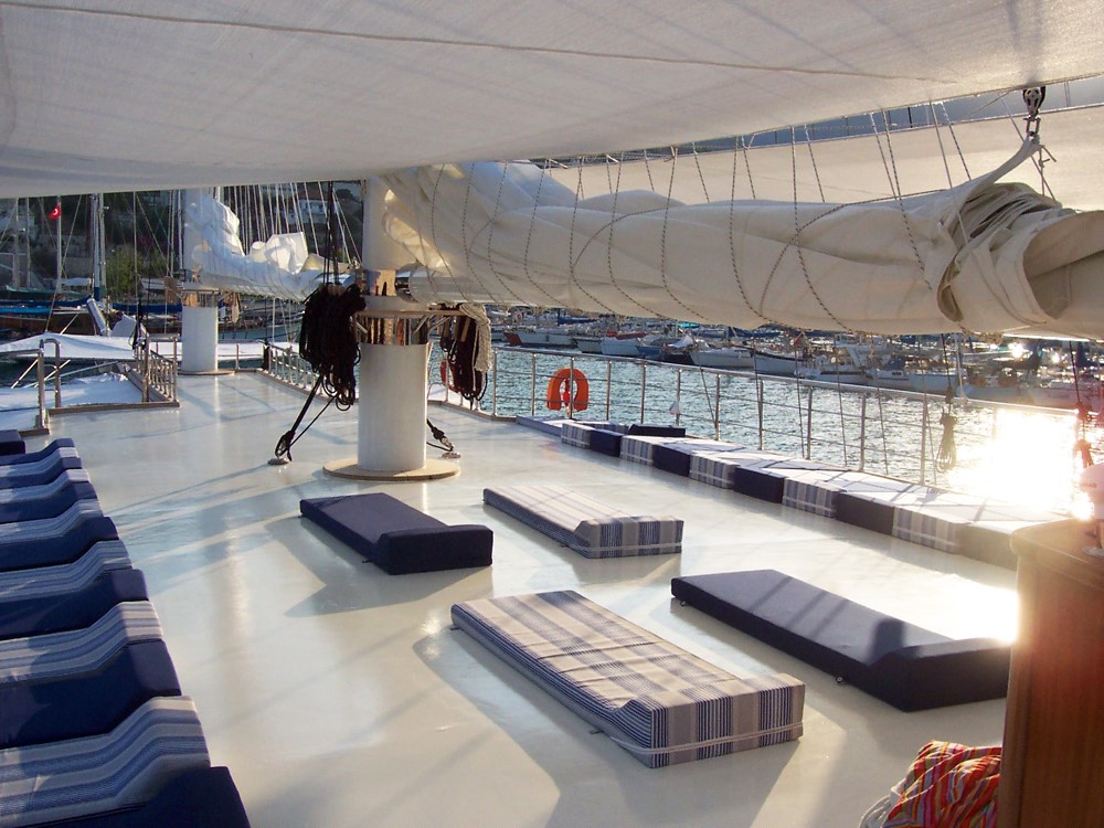 - зона отдыха с шезлонгами на солнечной палубе – наслаждайтесь лучами теплого солнца, свежим морским бризом и красотами побережья Средиземного моря.