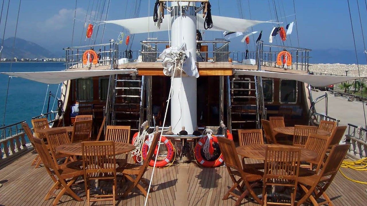 Элегантная 67-метровая яхта построена в 2006 году и прошла реконструкцию в 2014 году. Трехмачтовая яхта, полностью выполненная из тика, – самое большое судно подобного класса в Турции. Высота мачт составляет 36 метров, а осадка – более четырех метров.