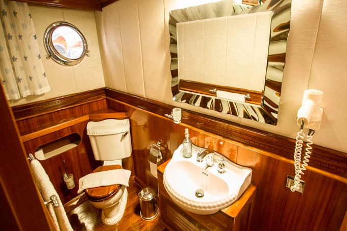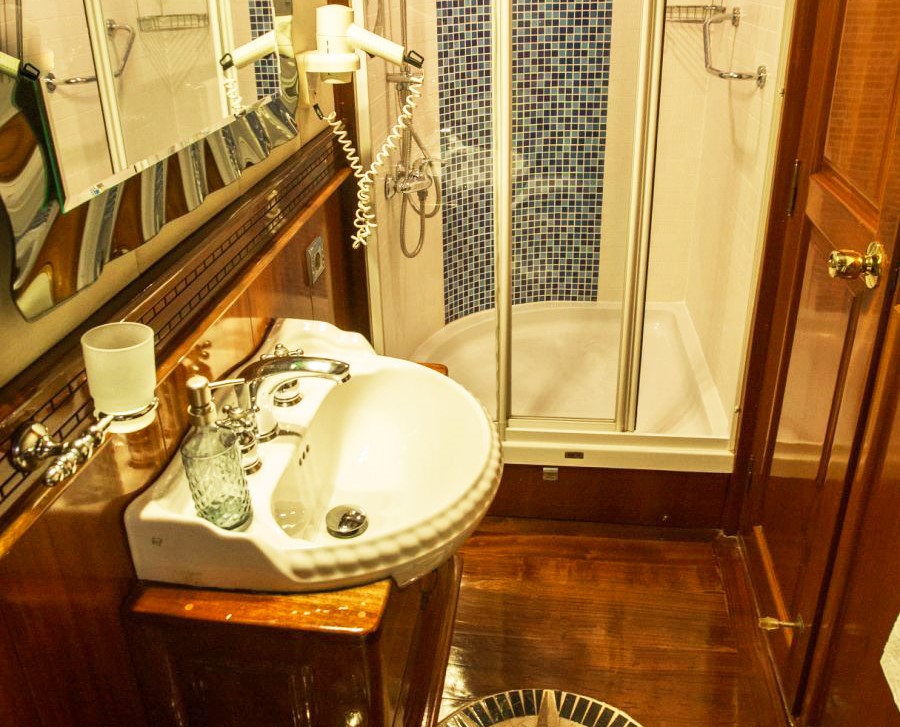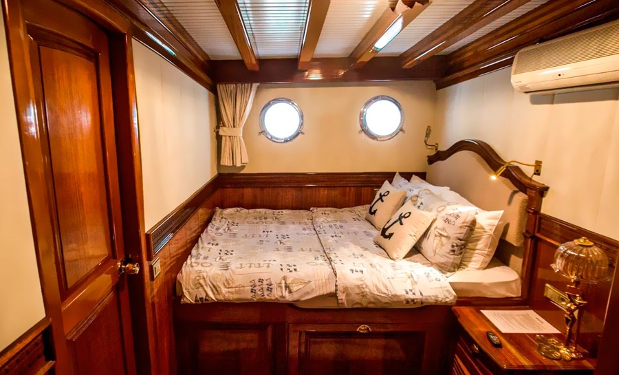 В оформление дизайна кают используется порода дорогого дерева, а винтажные элементы декора создают утонченную морскую атмосферу. Два иллюминатора обеспечивают достаточное количество дневного света. В каждой каюте есть кондиционер и собственная ванная комната. С любовью оборудованные каюты наполнят ваш отдых атмосферой уюта и морской романтики.