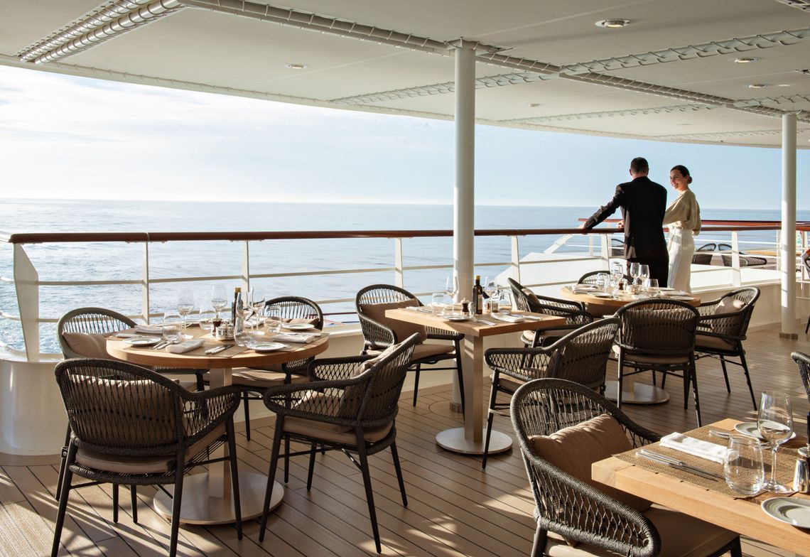 В основном ресторане подаются блюда высокой французской кухни и царит достаточно формальная обстановка. Ланчи и ужины в более свободном стиле проходят в гриль-ресторане на 3 палубе. Огромное количество всевозможных закусок, салатов и основных блюд не оставит равнодушным даже самого настоящего гурмана. В стоимость круиза включены также все напитки, за исключением премиальных вин. Выпить чашечку кофе или чая в любое время дня можно в одном из лаунжей. Уютная обстановка, мягкие кресла располагают к неспешной беседе или увлекательному чтению.