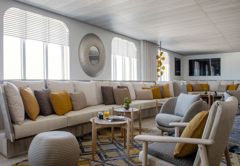 Зона лобби, 140 кв.м.: cтойка консьержа, бюро экскурсий, административные службы судна.