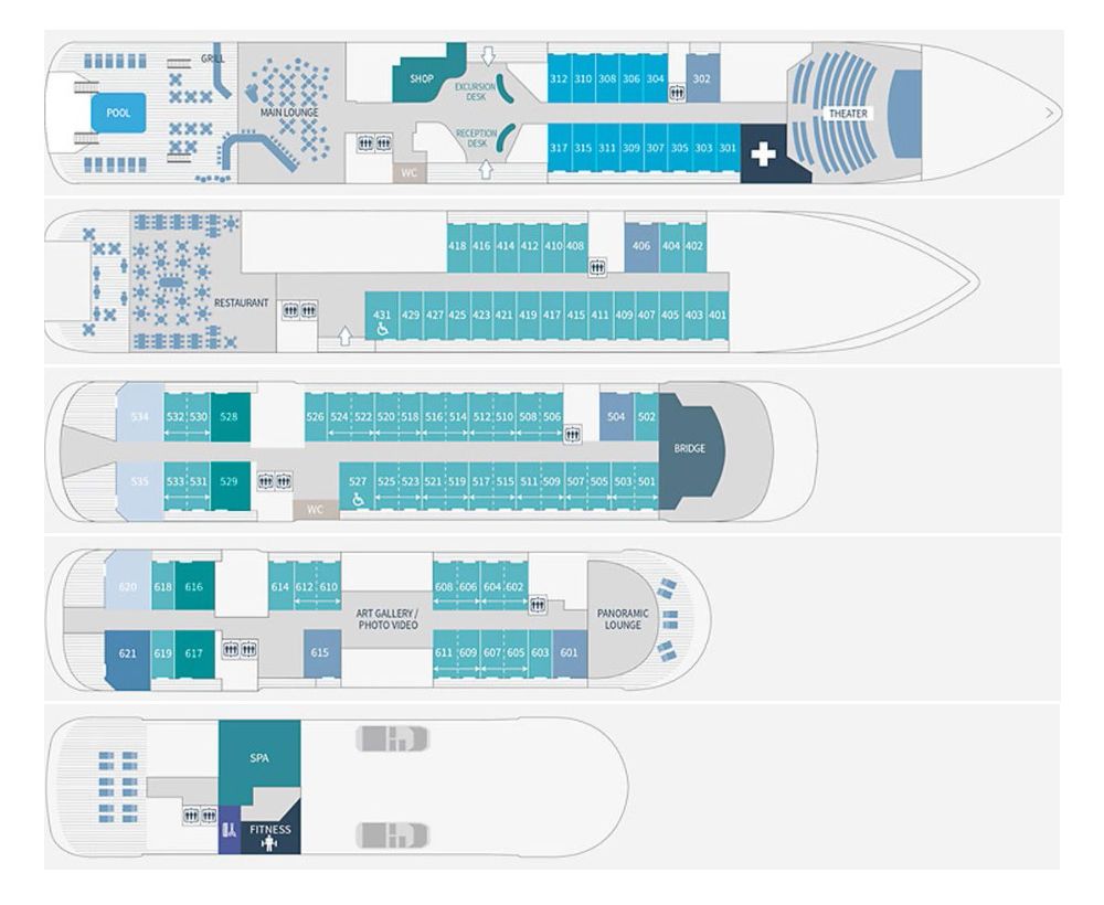 Количество пассажирских палуб: 6