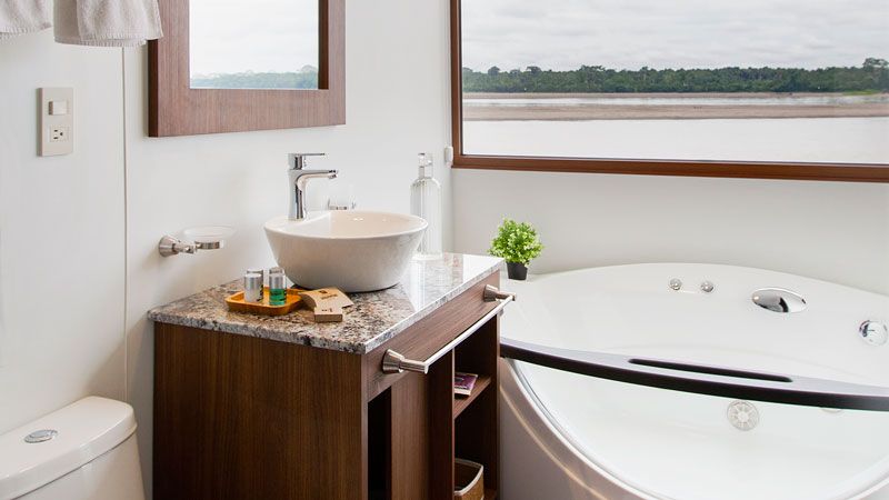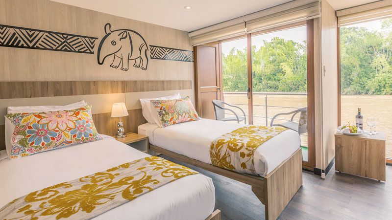 Наши двухместные каюты имеют окна от стены до стены, что является дополнительным преимуществом, каждый момент у вас будет возможность созерцать «амазонский космос». Они также оснащены кондиционером и собственной ванной комнатой (горячий душ). Присоединяйтесь к нам в этой поездке по тропическому лесу Амазонки, и вы встретитесь с природой, ее звуками, ее запахами, ее ароматами, и это вам подарит чувство покоя и гармонии благодаря пребыванию посреди леса, в центре Земли!