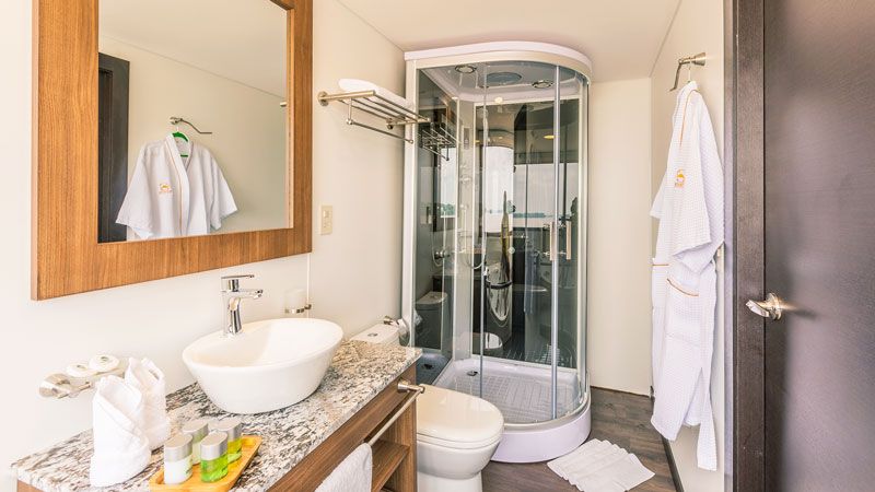 На борту наши гости будут иметь доступ ко всем удобствам. Комфортабельные каюты, бар, спа, столовая, бутик и терраса с видом, который окутает ваши чувства, вы почувствуете себя обнятыми природой, и вы по достоинству оцените величие реки Напо, а также впечатляющую фауну Амазонии: обезьяны, птицы, бабочки, розовые дельфины, наконец бесчисленные животные, населяющие наши эквадорские джунгли.