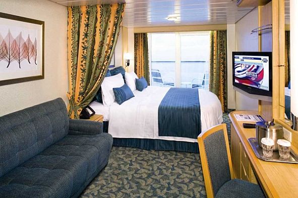 Самые привилегированные каюты с точки зрения площади и расположения, а также особых видов сервиса. Благодаря наличию веранды, увеличенной площади и панорамным окнам в каюте всегда много света. Балкон оснащен парой шезлонгов и столиком. К Вашим услугам спальная зона с двумя односпальными кроватями с возможностью их объединения в одну кровать Royal King, гостиная с диваном и столиком, а также ванная комната с ванной и двумя раковинами, мини-бар, холодильник, сейф, кондиционер, внутренний телефон, телевизор с поддержкой кабельного вещания. Дополнительные привилегии: приоритет при посадке, возможность заказать в каюту завтрак, обед и ужин из ресторана, роскошные спа халаты и тапочки в каюте.