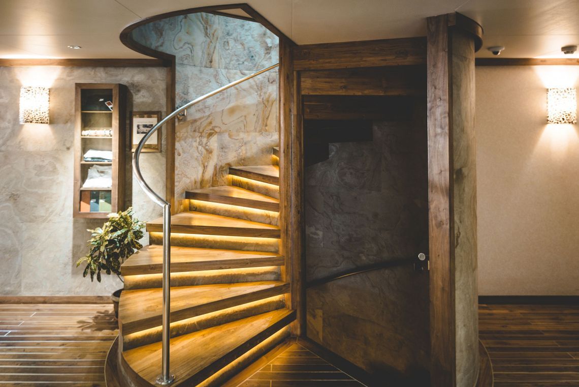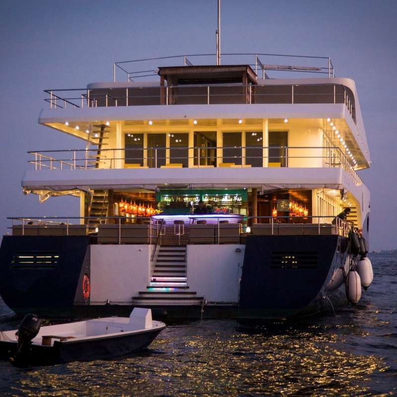 На четырех просторных палубах каждого из этих суден нашлось место для тренажерного зала и джакузи, кроме того здесь целая палуба отведена для того, чтоб наслаждаться вечерними коктейлями, живыми концертами и просмотрами кинофильмов под открытым небом. Экипаж на каждой яхте насчитывает 35 человек, и такое высокое соотношение количества членов команды к количеству гостей крайне положительно сказывается на качестве обслуживания: четыре спа-терапевта, мастер йоги, четыре повара и фотограф однозначно сделают ваше пребывание на борту приятным и беззаботным.
