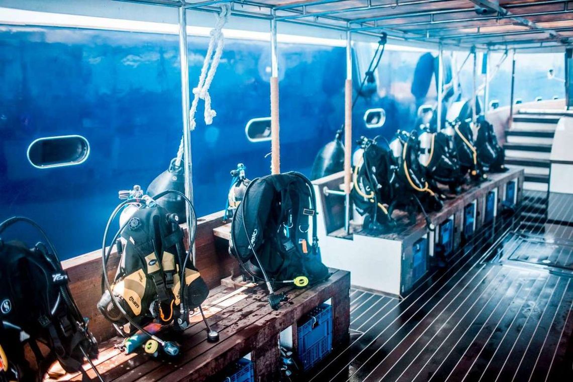 Доступен только для сертифицированных дайверов. В ходе пребывания на борту яхты, гости, выбравшие пакет услуг «Спа», могут дополнительно заказать ознакомительное погружение в рамках курса Discover Scuba Diving или пройти курс Open Water Diving и получить соответствующий сертификат. Гости, бронировавшие пакет услуг «Дайвинг», также могут заказывать спа-процедуры, если таковые будут доступны. Пары, выбравшие один пакет услуг «Дайвинг» и один пакет услуг «Спа», могут обменивать дайвы на спа-процедуры.